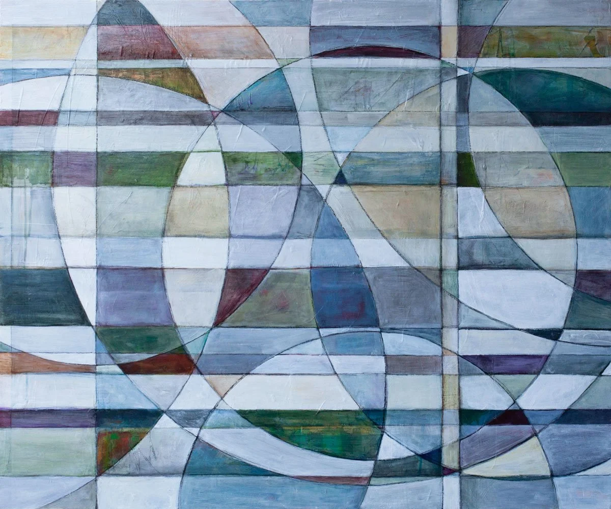 "Esplanade," Acrylic, beeswax and collage on panel, 20 x 20 inches